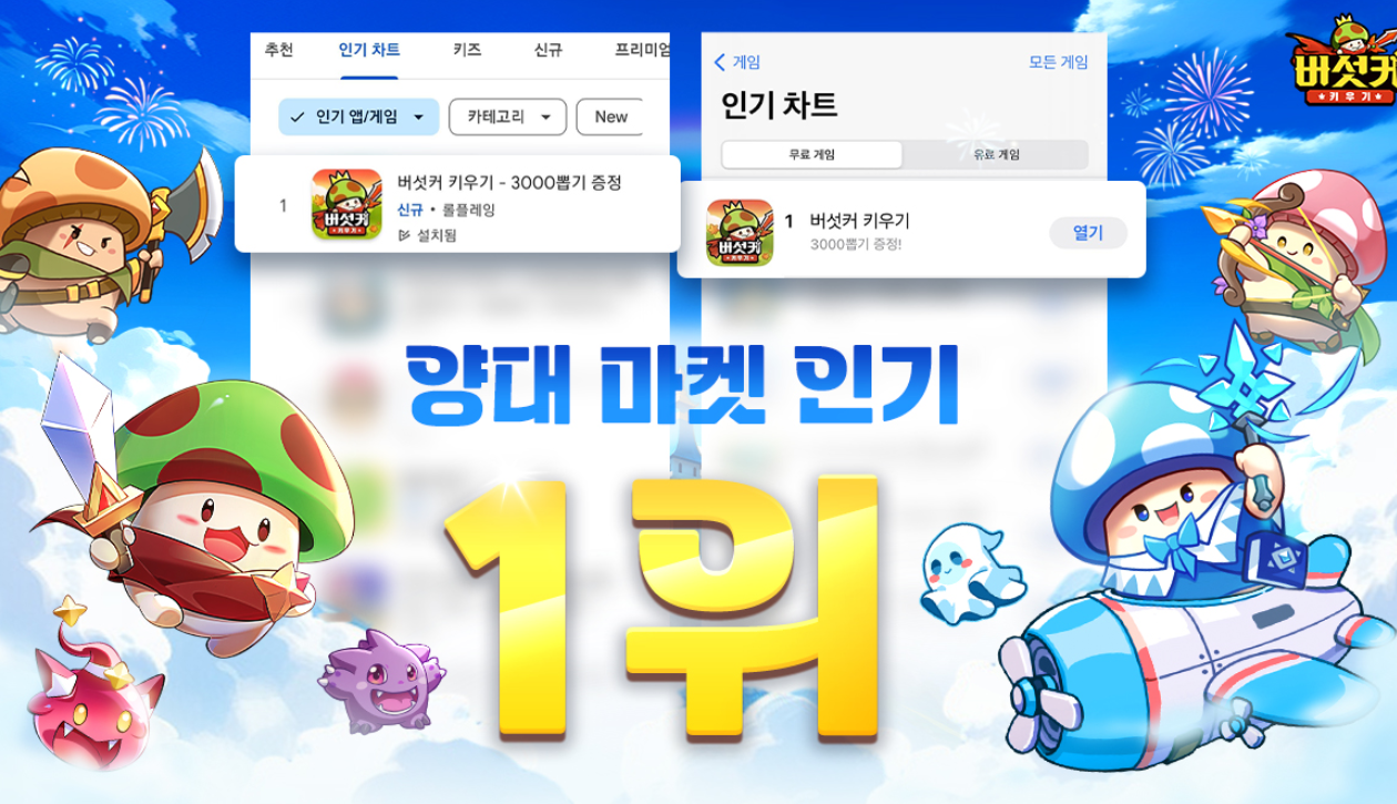 정식 오픈 후 인기 많아진 버섯커 키우기 직업 전직 공략 카페까지 모두 한 번에 보러 가기!▼