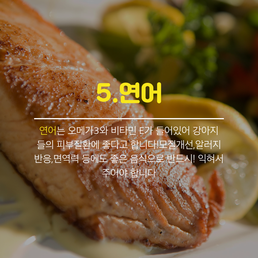 오메가 3와 비타민 E가 함유된 강아지 피부 질환에 좋은 음식, 반드시 익혀서 줄 것