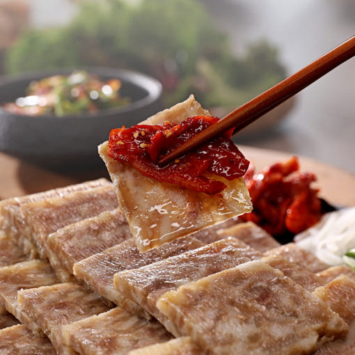 흑돼지 편육는 다양한 양념과 소스와 잘 어울려 고급 요리와 특별한 날에 인기 있는 선택입니다.